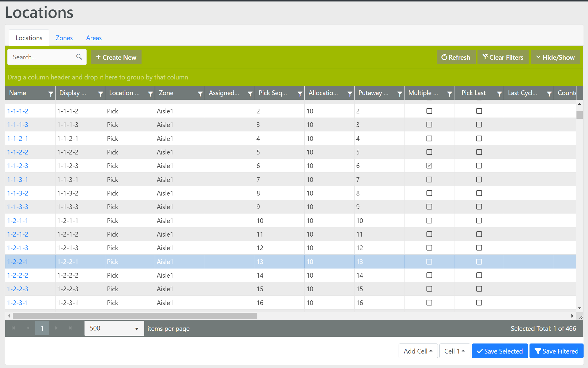 - Alternatively, only select a portion of the filtered Locations and select Save Selected