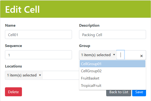 A Cell is a group of Locations, typically setup around a packing station, for the purpose of fully picking orders from within the Cell. Groups of Cells with the same product configuration can be grouped into a Cell Group. This allows flexibility in pulling Batches assigned to the Cell Group into any Cell where that product configuration should exist.