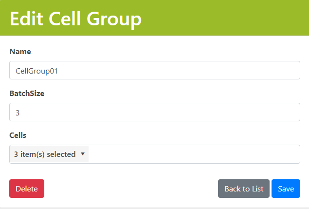 A Cell Group is used to identify Cells that should have the same product configuration. Every Cell must be assigned to only one Cell Group. If none of the Cells have a similar product configuration, then there can be only one Cell within a Cell Group.