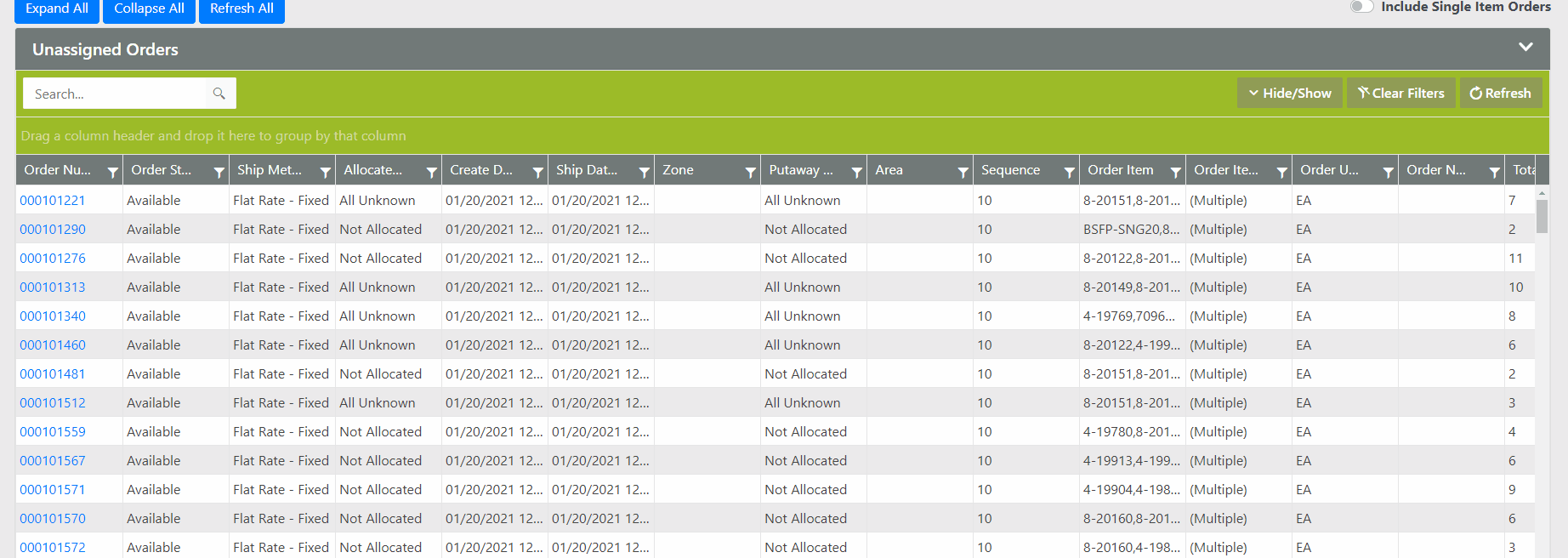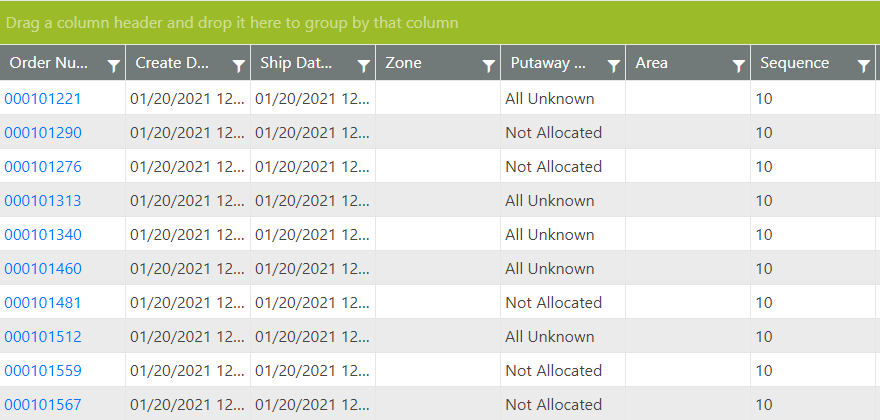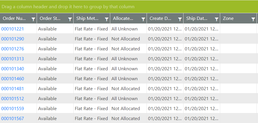 Throughout WOS Manager, data is presented in grids that can be sorted and filtered to present the desired subset of data.