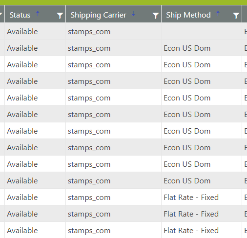 If the data set that is available through the data grid is potentially large, a Pre-Filter is applied to limit the initial data load. Look for the green icon that indicates which columns have been filtered to identify what pre-filter has been applied.