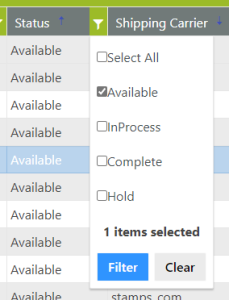 Selecting a row can be made by clicking anywhere on the row. A selected row will be highlighted in blue. To select multiple rows, standard windows selection methods will apply.