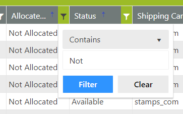 - A grid can be filtered by any header by clicking on the filter icon