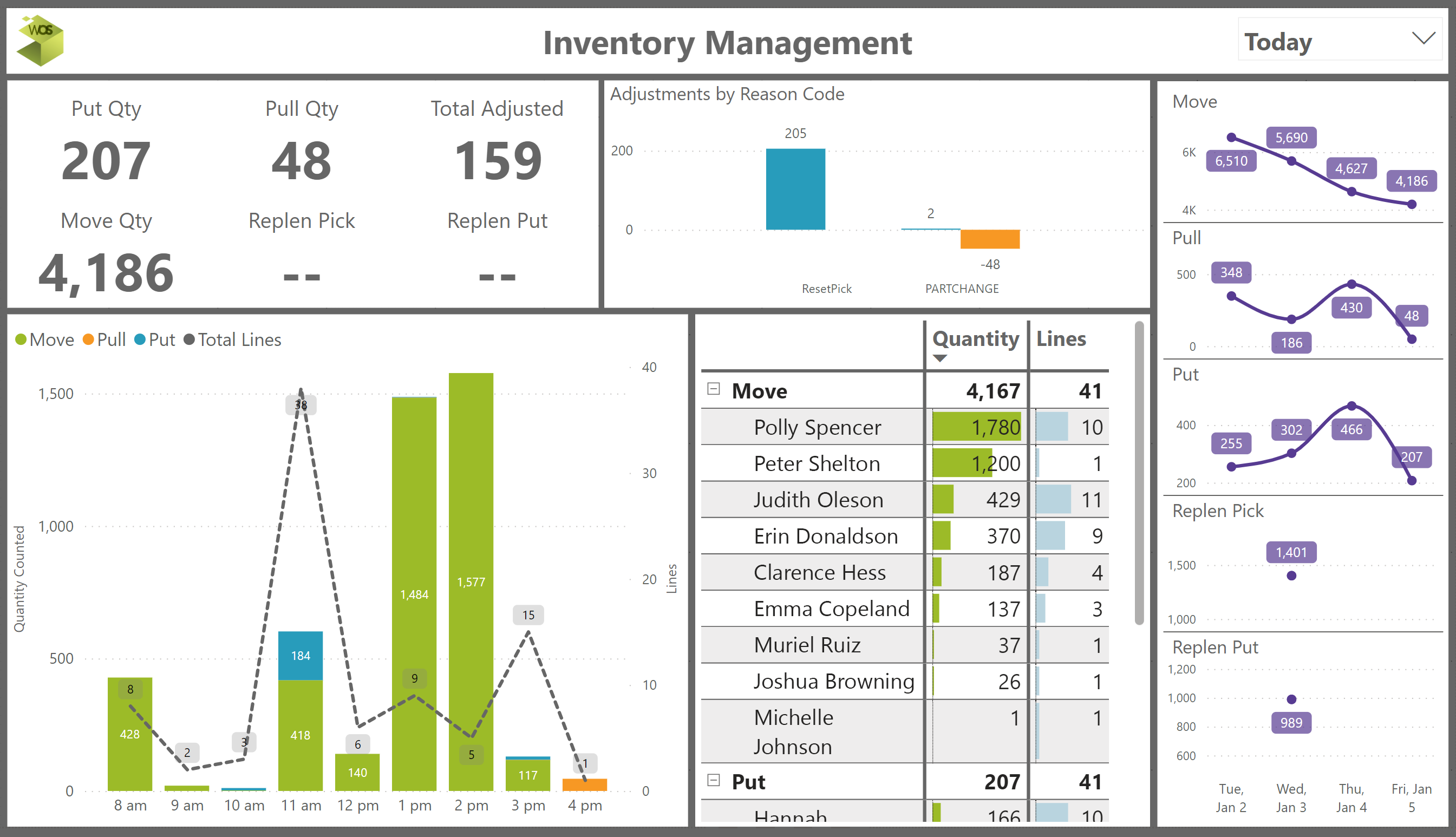 - Adjustments by reason code provides a quick view of why inventory is being adjusted