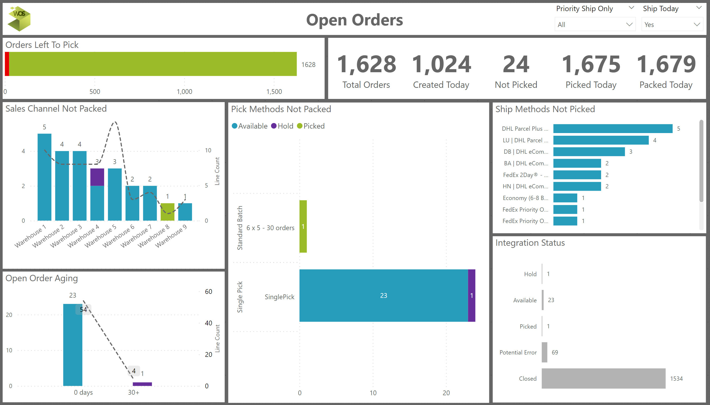 - Ship Today flag allows a split between priority orders. Work with WOS Support to get the details of what can be flagged as not needing to ship same-day
