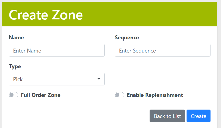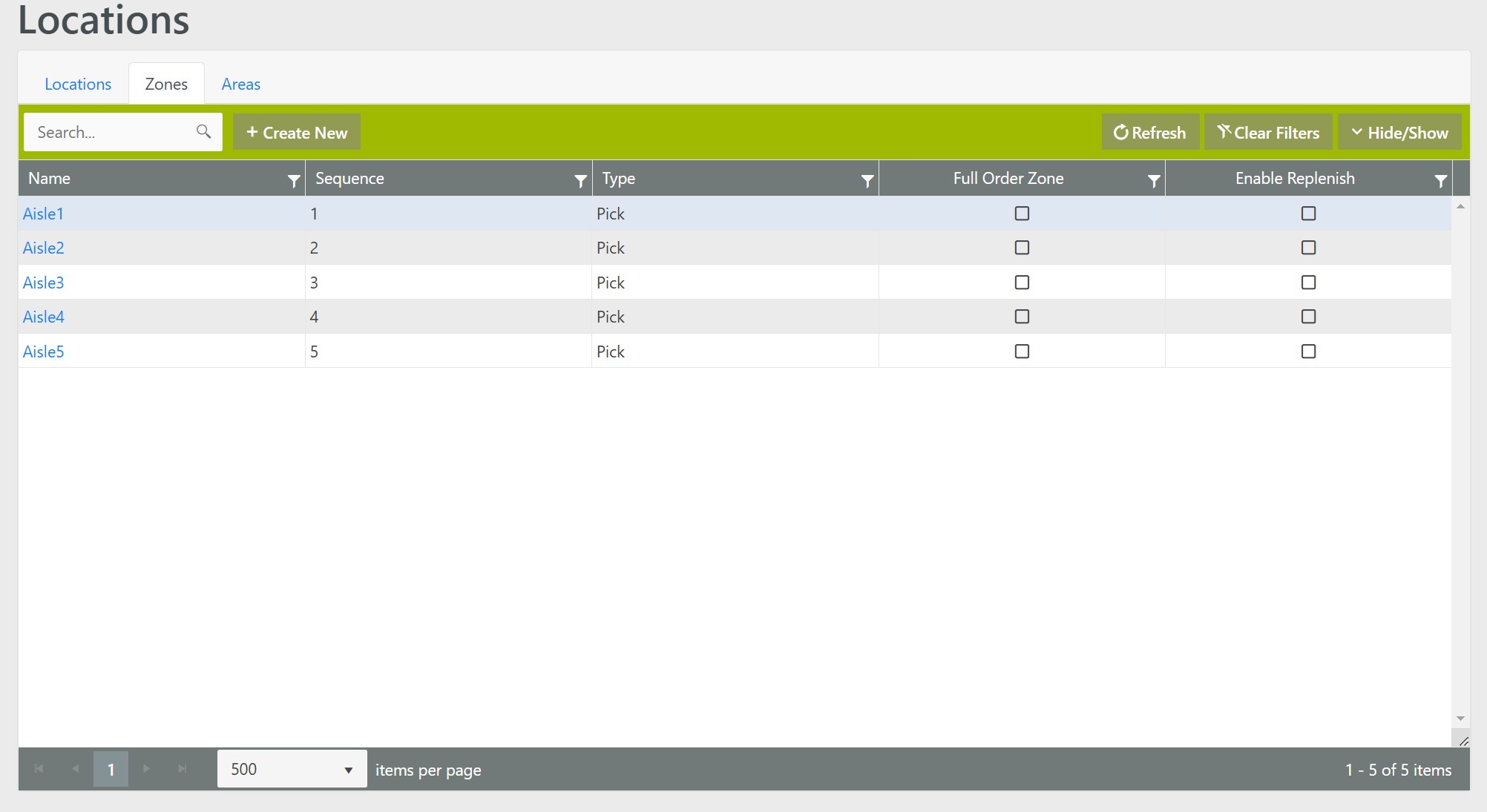 Zones are a way of creating sections within the warehouse.  There are several ways that Zones can be used within WarehouseOS.