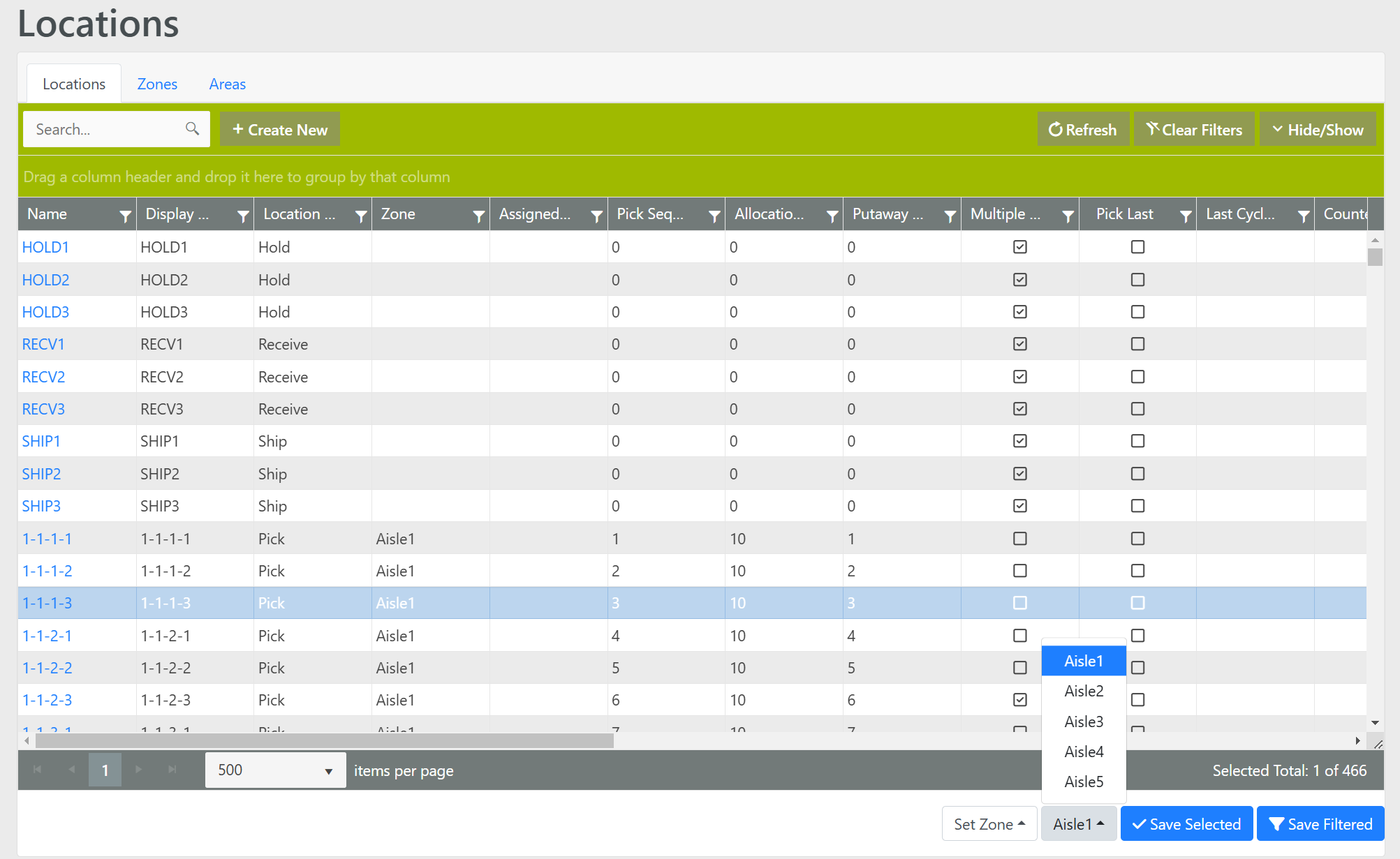 Zone assignments can be managed from the Locations grid. The column Zone will identify the Zone the Location has been assigned to. Actions below the grid can be used to update and manage the Zone assignment.